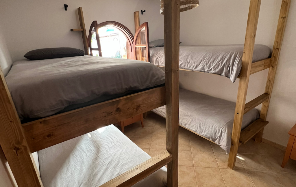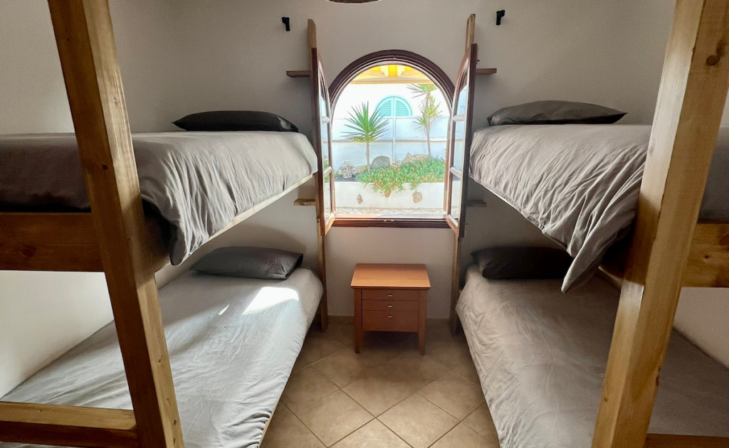 Tindaya to jeden ze wspólnych pokoi w willi Pura Vida. Jest to pokój z dwoma łóżkami piętrowymi, dlatego w pokoju mogą przebywać maksymalnie 4 osoby.